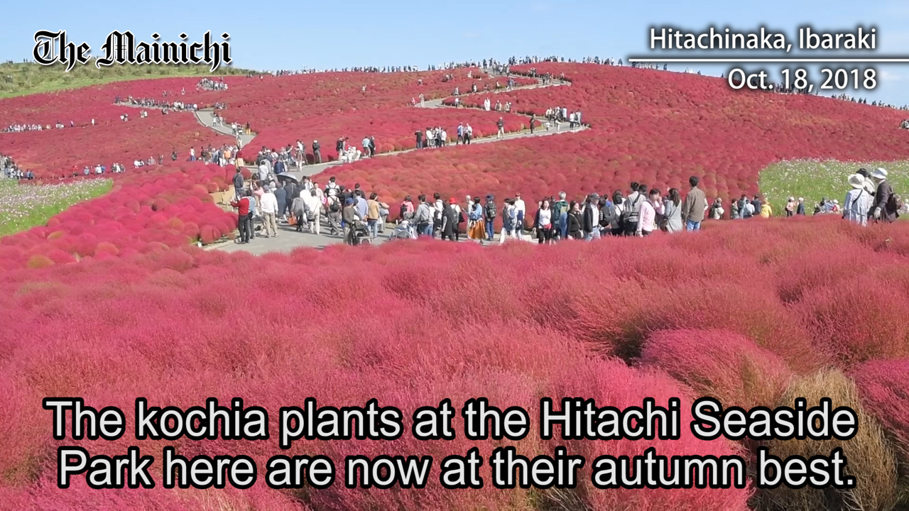 The kochia plants at the Hitachi Seaside Park here are now at their autumn best. <a href="https://mainichi.jp/english/articles/20181019/p2a/00m/0na/019000c">【Go to article】</a>