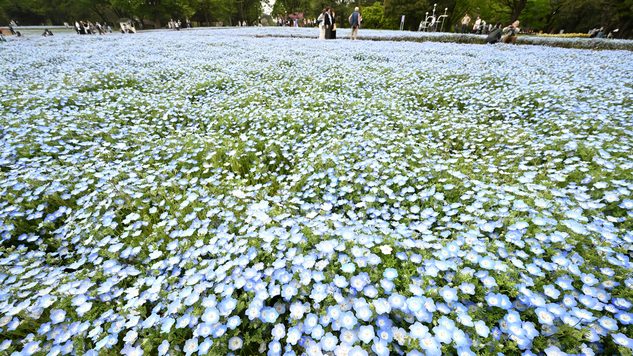 東京都立川市と昭島市にまたがる国営昭和記念公園で、約20万本のネモフィラが見ごろを迎えている。4月下旬ごろまで青のじゅうたんが楽しめる。【撮影・西夏生】2026年4月14日公開 関連記事→https://mainichi.jp/articles/20260414/k00/00m/040/251000c