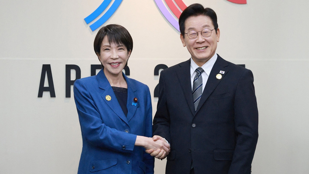10月30日に行われた日韓首脳会談で、高市早苗首相が韓国の国旗「太極旗」に一礼したことが韓国メディアや韓国国民の注目を集めている。首相は、会談冒頭で李在明大統領と握手しながら記念撮影を終えた後、席に向かう過程で日の丸と太極旗に向けてそれぞれ、頭を下げた。MBNテレビによると「処世術なのか」「心を込めた1回のあいさつは、言葉よりも強い」などの投稿もあったという。(ロイター、サムネイルは聯合ロイター)2025年11月1日公開