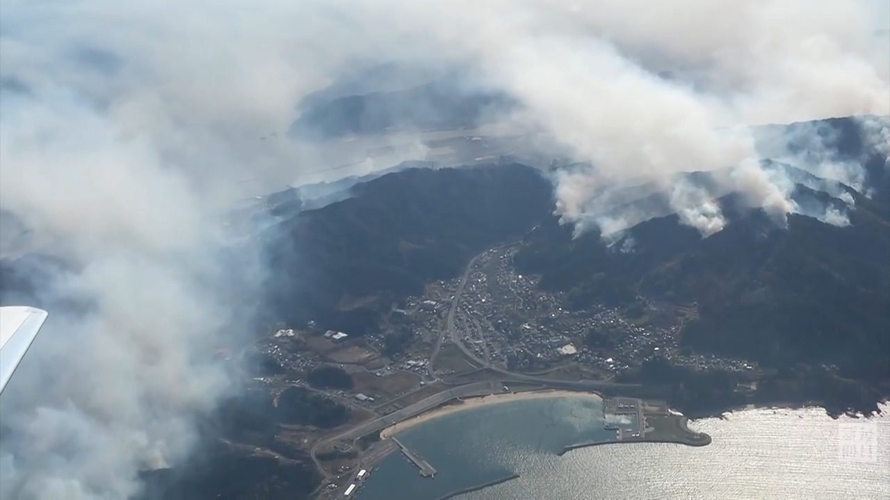 岩手県大槌町で22日午後に発生した山林火災は24日も延焼を続け、焼失面積が同日午前6時現在で1176ヘクタールに達した。前日の同時刻(201ヘクタール)の5倍以上に拡大した。県や自衛隊などのヘリが24日早朝から消火活動をしているが、鎮火のめどは立っていない。【撮影・本社ヘリから】2026年4月24日公開
