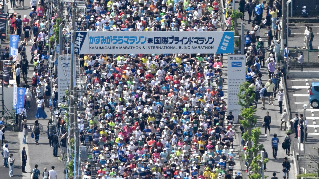 第36回かすみがうらマラソン兼国際ブラインドマラソンが茨城県土浦市のJ:COMフィールド土浦を発着点に開催された。フルマラソンや10マイルなどに計1万8065人が出場し、春の陽気の中を駆け抜けた。【撮影・西夏生】2026年4月19日公開